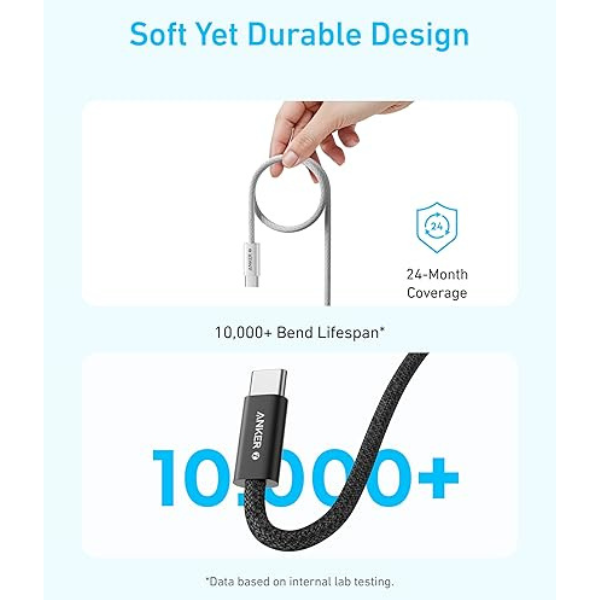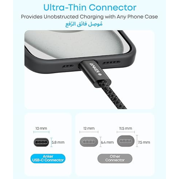 انكر - كيبل شحن قماشي 240 واط - اسود
