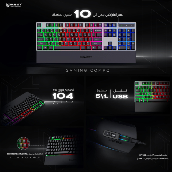 | النوع: | طقم ألعاب متكامل Gaming Combo | الاستخدام: | ألعاب، عمل مكتبي، دراسة |